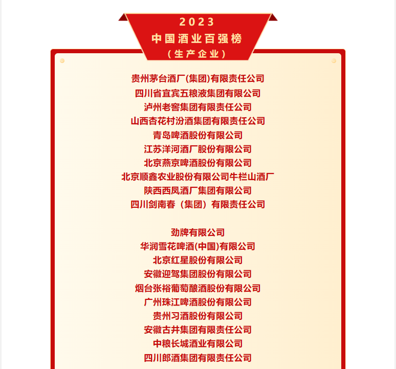 (榜单发布于《中国酒业》杂志2024年第1期)